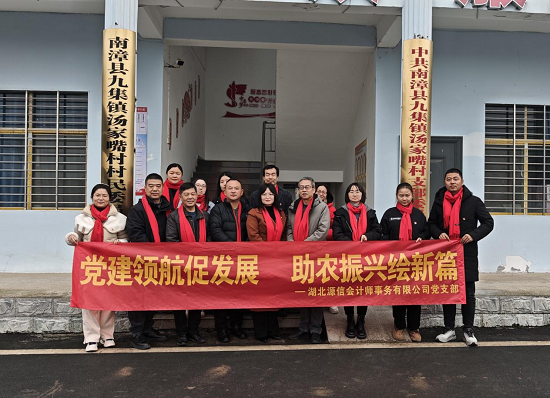 2025年12月23日,湖北源信会计师事务有限公司党支部、湖北秉正会计师事务有限公司党员代表,在襄阳市国资委驻汤家嘴村第一书记牵头下,前往湖北省襄阳市南漳县九集镇汤家嘴村,与驻村工作队和村“两委”联合开展“党建领航促发展,助农振兴绘新篇”主题党日活动。