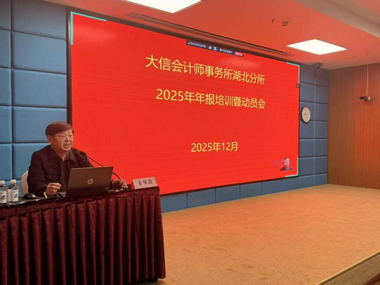 为切实做好2025年年报审计工作,12月25日-27日,大信湖北分所在湖北省市场监督管理宣传教育中心举办2025年年报培训暨动员会。湖北分所所长、业务部门合伙人、项目经理及注册会计师等近100位审计人员到场参加培训,其余出差人员通过腾讯会议同步观看培训直播。